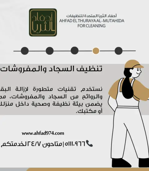 AHFAD EL THURAYA ALMUTAHIDA is a leading Qatari company specializing in high-quality cleaning and pest control services. We focus on delivering clean, safe, and healthy environments using eco-friendly materials and the latest cleaning technologies. Our professional, well-trained team ensures that every service is delivered to the highest standards.